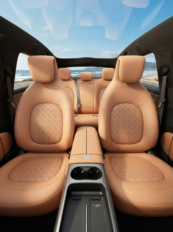 全新smart精灵6号座舱的一个明显亮点是打孔工艺。多针数控打孔形成的孔型渐变,有点像刺绣的针脚密度,远看类似细针织纹,近看则是精密孔径的阵列。设计灵感据说来自高定时装工坊,30次改版保证了从平面图纸到立体曲面的良好适配。